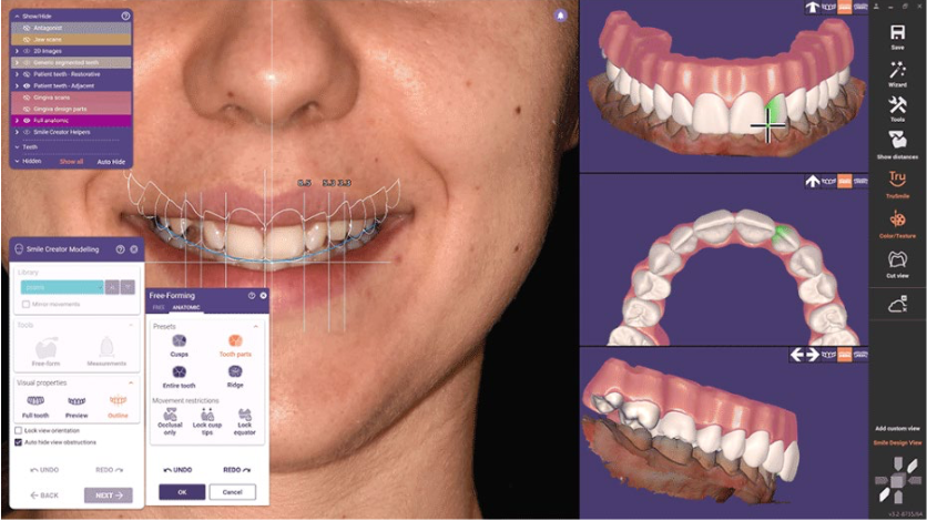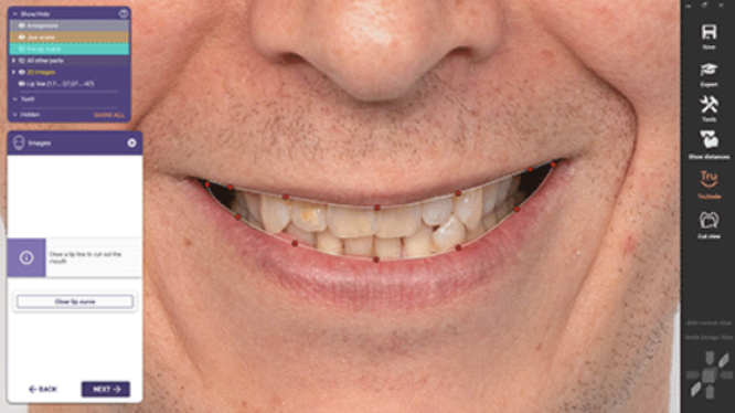 در ماژول طراحی لبخند حالا می توانید از لثه مجازی استفاده کنید تا خروجی بسیار بهتری داشته باشید. همچنین می توانید از دندان های طبیعی بیمار برای طراحی استفاده کنید. در این نسخه از نرم افزار قابلیت تطابق مدل سه بعدی با عکس دو بعدی از بیمار بسیار پیشرفته تر شده است و می تواند به خوبی مدل سه بعدی را با طول کانون دوربین منطبق کند.