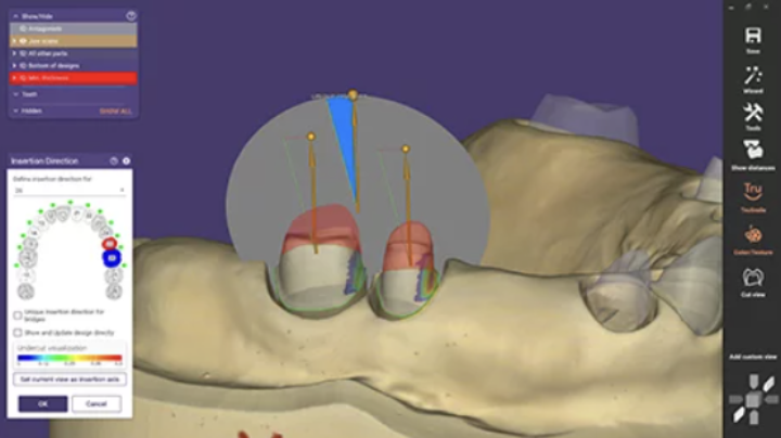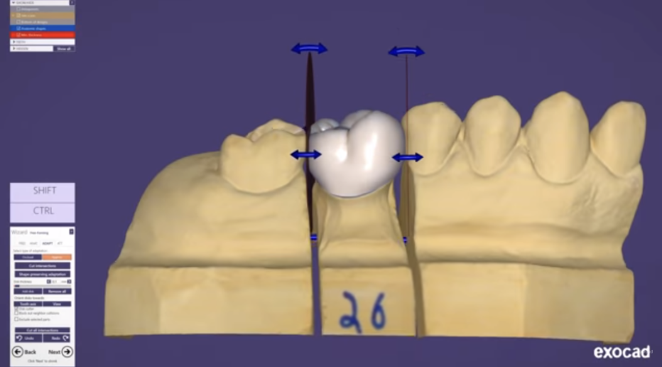 در این نسخه فرایند طراحی به صورت کامل نیز فراهم است شما می توانید به صورت هم زمان دندان ها را در قوص فک تنظیم نمایید و طراحی چندین واحد را به صورت هم زمان انجام دهید.